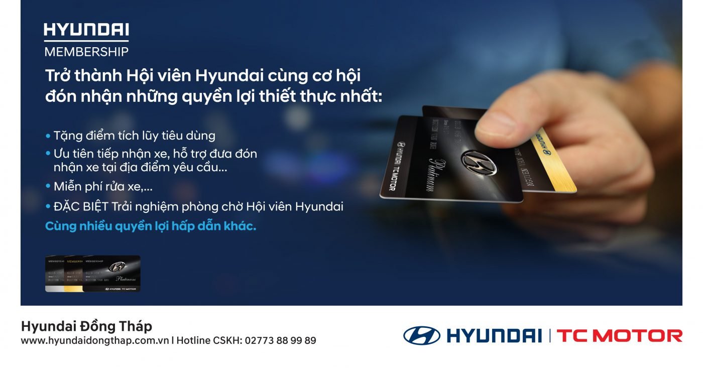 - Đối tượng tham gia: Khách hàng sở hữu xe Hyundai đăng ký tham gia Chương trình Hội viên tại Đại lý Hyundai Đồng Tháp