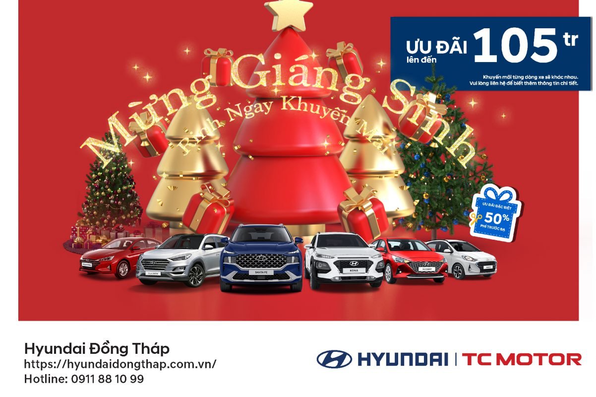 Hòa cùng không khí nhộn nhịp tháng 12, Hyundai Đồng Tháp tưng bừng khuyến mãi cuối năm với chương trình khuyến mãi cực hấp dẫn: MỪNG GIÁNG SINH – RINH NGAY KHUYẾN MÃI. Duy nhất tháng 12 này tại Hyundai Đồng Tháp.