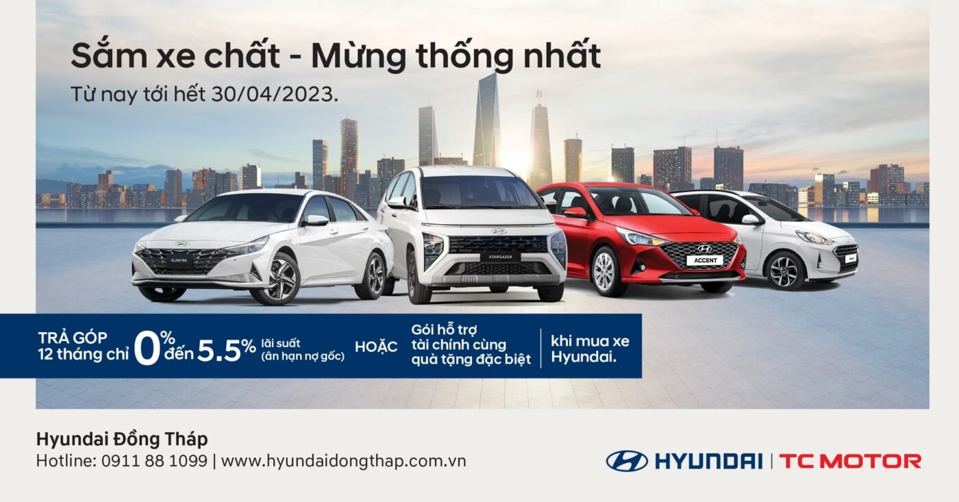 Từ nay cho đến hết 30/04/2023, Liên doanh ô tô Hyundai Thành Công Việt Nam (HTV) chính thức triển khai chương trình ưu đãi đặc biệt “Sắm xe chất – Mừng Thống Nhất” áp dụng tại Hyundai Đồng Tháp. Theo đó, khách hàng sẽ được lựa chọn hưởng 1 trong 2 gói ưu đãi đặc […]