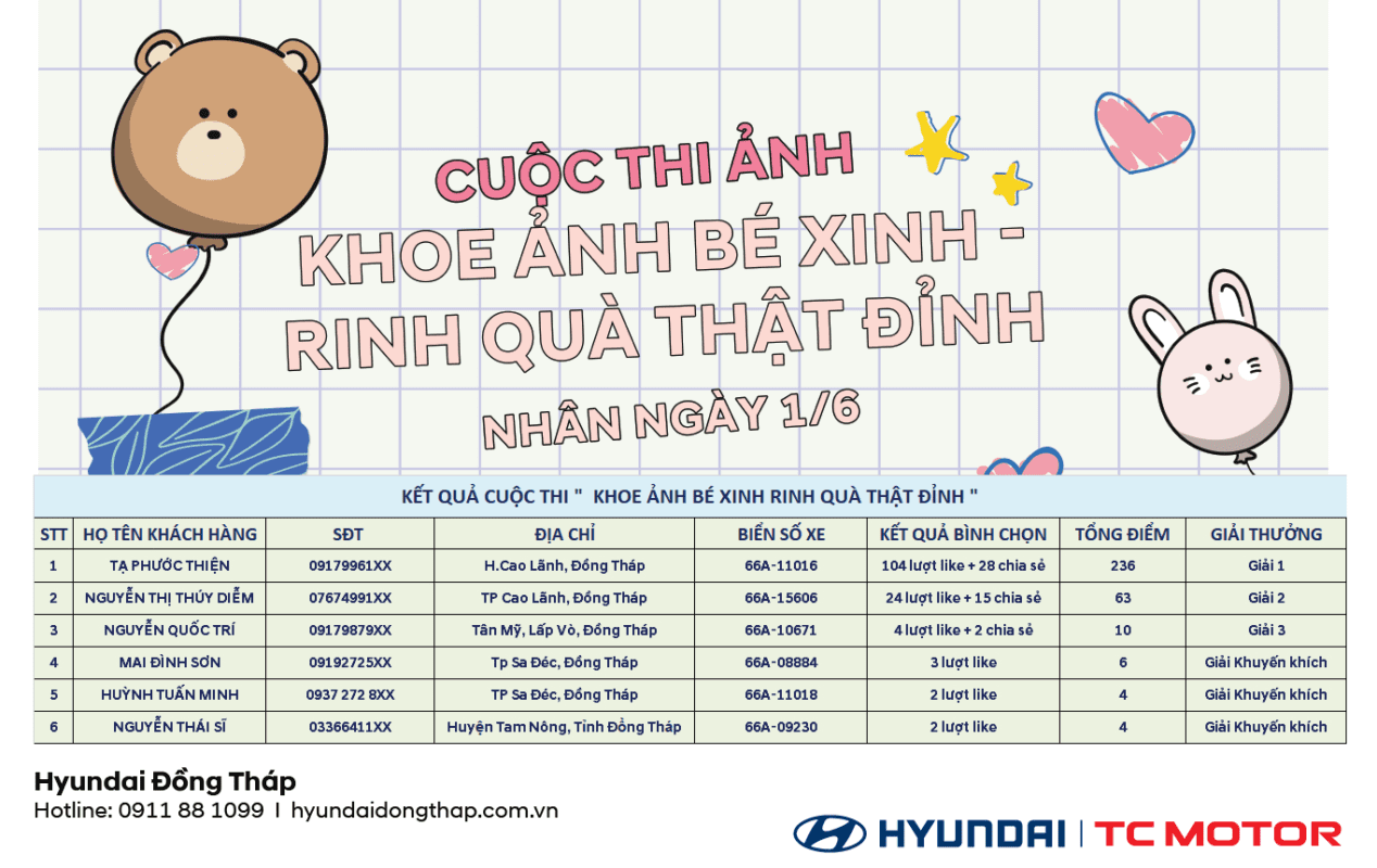 Sau hơn 3 tuần diễn ra, Hyundai Đồng Tháp đã nhận được rất nhiều bài dự thi từ các Khách hàng gần xa. Hành trình vận động bình chọn cho ảnh của mình đã được các Quý khách dự thi thực hiện rất sôi nổi. Sau khi tổng hợp lượt bình chọn từ BTC và […]